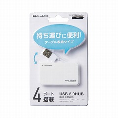 ケーブルが本体に収納でき携帯に便利!バスパワー専用タイプの4ポートUSB2.0ハブ。