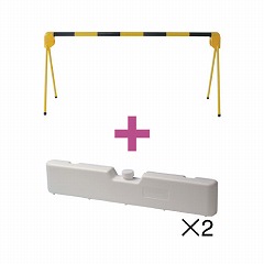 移動もらくらくプラスチック製の折りたたみ式バーと注水タイプの重石のセット。