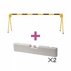 移動もらくらくプラスチック製の折りたたみ式バーと注水タイプの重石のセット。