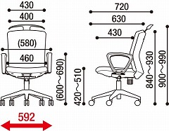 ●外寸法/幅592×奥行720×高さ900から990mm