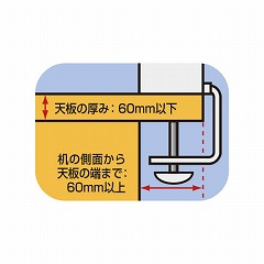 ●設置可能寸法/天板厚:20から60mm、設置部奥行:75mm以上