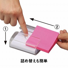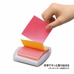 片手で1枚ずつ取り出せるので、電話中やパソコンの操作中にメモを書き込む時に便利です。ポップアップノート用のディスペンサーにセットしてお使いください。ピンクとイエローの紙色が交互に出てきます。