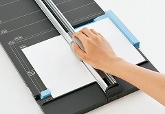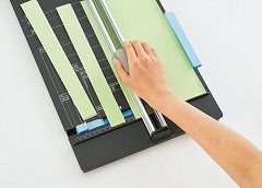 どんな形の紙も簡単に半分に裁断できるスライドカッター!Wゲージが同じ幅ずつ動くから半分に裁断する時のわずらわしさを解消!