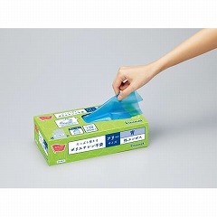 取り出し口が広くて取り出しやすいく、タテ置きでもヨコ置きでも使える便利なポリエチレン手袋。