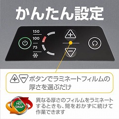 フィルム詰まりを未然に防ぐ「PTSPLUS」、省エネと安全を兼ね備えたオートシャットオフなどワンクラス上の機能を満載した、2本ローラー・ラミネータ―。