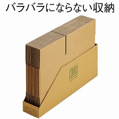 片手でスッと取り出せるスリーブが組立て式のボックストレーになる底面がA4相当のダンボール箱です。紐などで結束しなくてもバラバラにならないので保管や管理もしやすい!