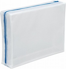 たっぷりマチありのメッシュケース。L字型ファスナー採用でがさばる物もたっぷり収納できて出し入れやすい!マチ幅は80mmでYシャツだと3枚も収納できます。通販カタログもまるまる収納可能です。