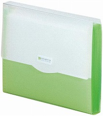 書類を項目別にすっきり整理できる多仕切ドキュメントファイル。開閉がカンタンな面ファスナー使用。ポケットの見出しは交換式で、タイトル記入が簡単です。