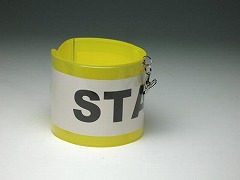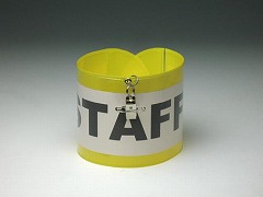 クリップによる簡単取り付けが出来ます。服装や腕の太さに合わせて周長を3段階に調整可能。「STAFF」と記載されたサンプル用紙付き。