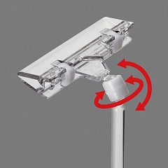 オール樹脂製(プラスチック製)なので、屋外でも水に濡れてもサビることなく長く使えます。自由自在に曲がるボールジョイントでクリップ部分の角度も自由自在に変えられます。底についている付属の両面テープで固定可能。折りたたみ可能で収納に便利。安心の日本製。
