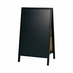 2リットルペットボトルを4本置けば風速15m/秒にも耐えられるA型ブラックボード。両面筆記可能。折りたためるので収納にも便利。