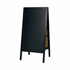 2リットルペットボトルを6本置けば風速15m/秒にも耐えられるA型ブラックボード。両面筆記可能。折りたためるので収納にも便利。