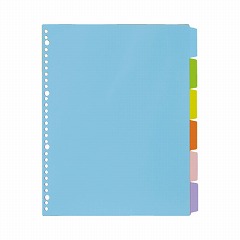 丈夫で長持ちするPP製カラーインデックス。A4サイズの30穴ファイル対応。6色6山タイプで6枚入り。