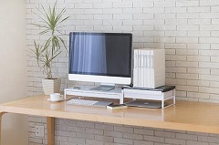 デスクの上をすっきり整理。机上台を使えば有効スペースがアップします。引き出し付きでさらに便利に!