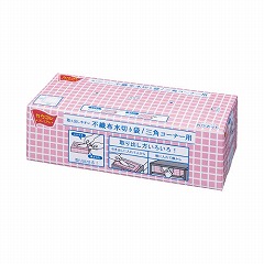 2か所の取り出し口で収納に便利な、不織布タイプの水切り袋。開け口が段違いで開きやすい。三角コーナー用。