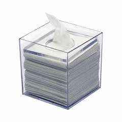 半分に切ったティッシュにぴったりなティッシュケース。枚数が増えて節約に。透明なので中身の残量が分かる。