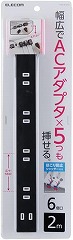 隣の差込口をふさがない!差込口の間隔が広くACアダプタもすっきり接続できる、ほこり防止シャッター付きスリムタップ。