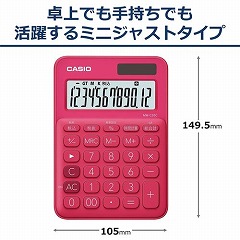 ポップでキュートなカラーの、カジュアルに使える電卓です。手持ちでも卓上でも使いやすいミニジャストタイプです