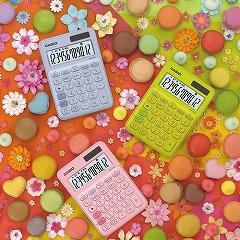 キュートなカラーがとってもかわいい!カジュアルな12桁電卓!時間計算機能もついています!