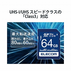 UHS-I,UHSスピードクラス「Class3」,ビデオスピードクラス「V30」に対応し、4K動画にも最適な高速タイプのSDXCメモリカード。