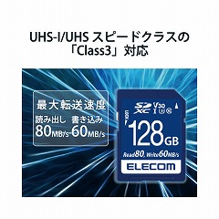 UHS-I,UHSスピードクラス「Class3」,ビデオスピードクラス「V30」に対応し、4K動画にも最適な高速タイプのSDXCメモリカード。