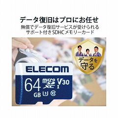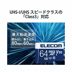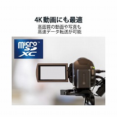 UHS-I,UHSスピードクラス「Class3」,ビデオスピードクラス「V30」に対応し、4K動画にも最適な高速タイプのmicroSDXCメモリカード。