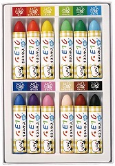 手足や体についても水で洗えば容易に落とせ、力いっぱい握って描いても折れにくい太さのクレヨンです。