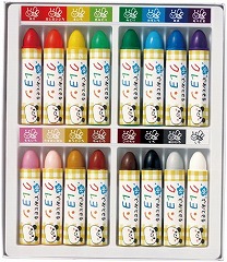 手足や体についても水で洗えば容易に落とせ、力いっぱい握って描いても折れにくい太さのクレヨンです。