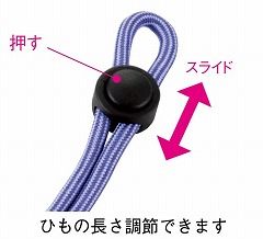 ●材質/フック・脱着パーツ:POM、ひも:PET、バンド:PE、安全パーツ:PP、調整パーツ:ABS