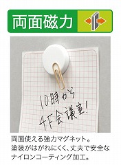 両面磁力がある強力カラーマグネットです。表面はナイロンコーティング加工なのでスチール面を傷つけません。