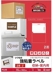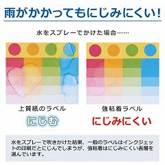 プラスチックやダンボールにしっかり貼りつく強粘着ラベル。インクジェットで印刷しても、水でにじみにくい。