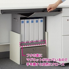 足元空間をすっきり収納!フタ付なので隠して収納できます。ファイルや形のいびつなもの(季節物)を収納できます。