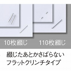 綴じ枚数に合わせて針の交換が不要のフラットクリンチタイプのステープラー!約10枚から110枚までを同じ針のまま綴じ作業ができます!複数サイズの針の用意も不要になるので、経済的!