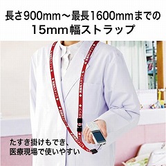 【+ 医療用 スタッフ +】と名入れされた医療端末用のストラップ。