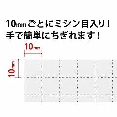 片面に粘着剤が付いているマグネットシートです。10mmごとにミシン目が入っているのでハサミやカッターを使わなくてもお好みのサイズに手でちぎれる新感覚のマグネットシートです。