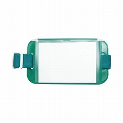 A7サイズが入る特大サイズの腕章名札。長さ調整バンドで腕にぴったりフィット。ケース部分はカードの落下を防止し、ほこりなどの侵入を防ぐフタつきです。安全ピンもついているので腕にしっかり固定できます。