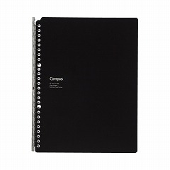 インデックスやふせんを貼ってもはみ出しにくいワイドな表紙。書類や名刺を一時保管できるポケット付き。中身が見えない不透明表紙。スリムで持ち運びしやすい。B5サイズ(26穴)のルーズリーフに対応。