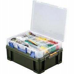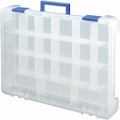 小物や部品をスッキリと整理できる収納ケース。持ち運びに便利なハンドル付。仕切りは自由に組み替えられます。