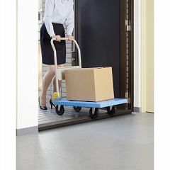 段差で止まるストレスを軽減!大型車輪の台車なので前輪を浮かさなくても段差走行もラクラク!広いオフィスや直線が多い場所での操作は後輪固定タイプがオススメ!