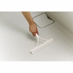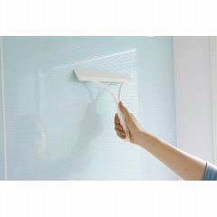 ブレード部分が幅広いので局面でもスパッと水が切れるスクイジー。シャワーフックにぶら下げて収納可能。