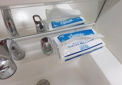水に流せるパルプ100%のハンドタオル。手拭きなどの衛生場面で活躍する、蛍光染料不使用タイプ。