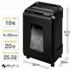 4×38mm&最大18枚 + 定格時間20分のパワフルなクロスカットシュレッダー。