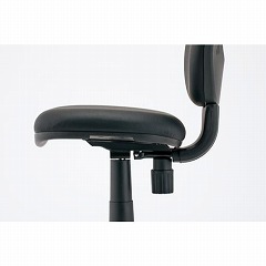 水拭きできる抗菌タイプのPVCレザー張り。背もたれロッキング機構付きのコンパクトチェア。