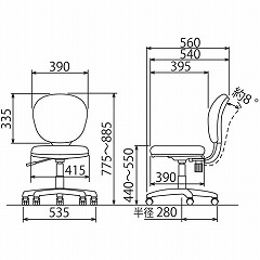 ●外寸法/脚幅535×奥行560×高さ775から885mm