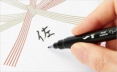 おくやみもお祝いも、これ1本。「墨」と「うす墨」のツインタイプ。にじみにくく水に強い顔料インキ。