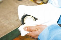 布同様の丈夫さと紙の持つ吸水性を発揮。糸くずの発生が無く均一素材のため異物混入の心配がありません。