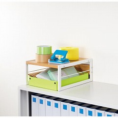 オフィスのキャビネットの上や、作業台の上にぴったりな収納棚。アーチ形状で収納スペースや作業スペースも広がります!下部にはA4書類トレーがぴったり入るサイズ設計です。