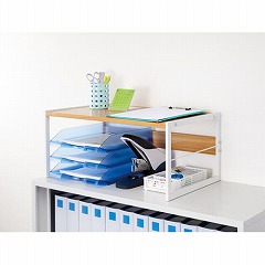 オフィスのキャビネットの上や、作業台の上にぴったりな収納棚。アーチ形状で収納スペースや作業スペースも広がります!下部にはA4書類トレーがぴったり入るサイズ設計です。