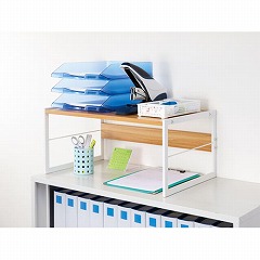 オフィスのキャビネットの上や、作業台の上にぴったりな収納棚。アーチ形状で収納スペースや作業スペースも広がります!下部にはA4書類トレーがぴったり入るサイズ設計です。