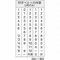 ※押型寸法は押し圧、インキのにじみ等で若干の誤差があります。オビ間隔のズレによりヨコ寸法に差がでます。ベルトのみの販売は致しておりません。